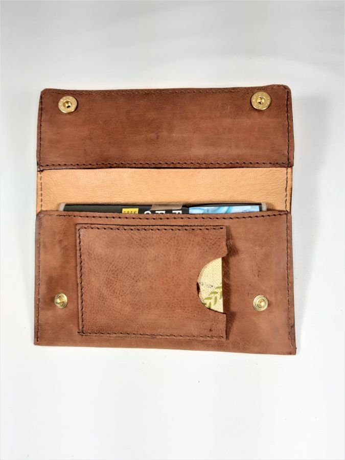 Blague à tabac en cuir de chèvre lisse, tannage minéral, coloris havane.