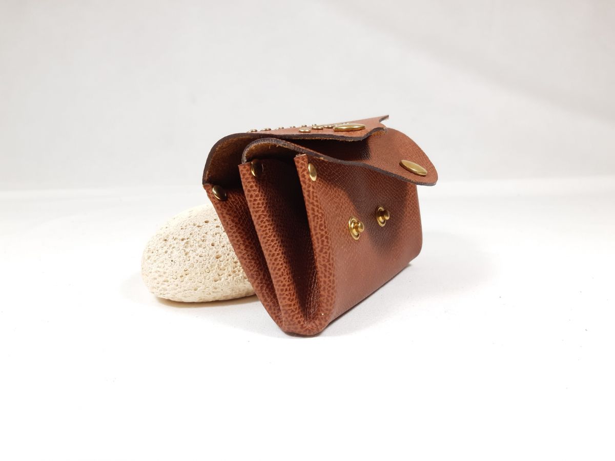 Porte-monnaie en cuir de vachette lisse, imprimé, tannage minéral, non doublé, coloris noisette.